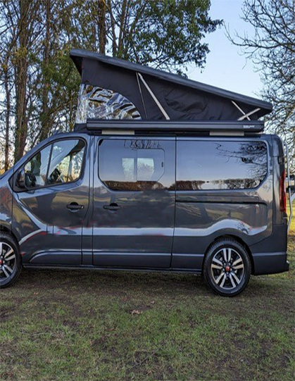 主要特征:一键自动开启和关闭房车升顶帐篷,也可手动开启和关闭。